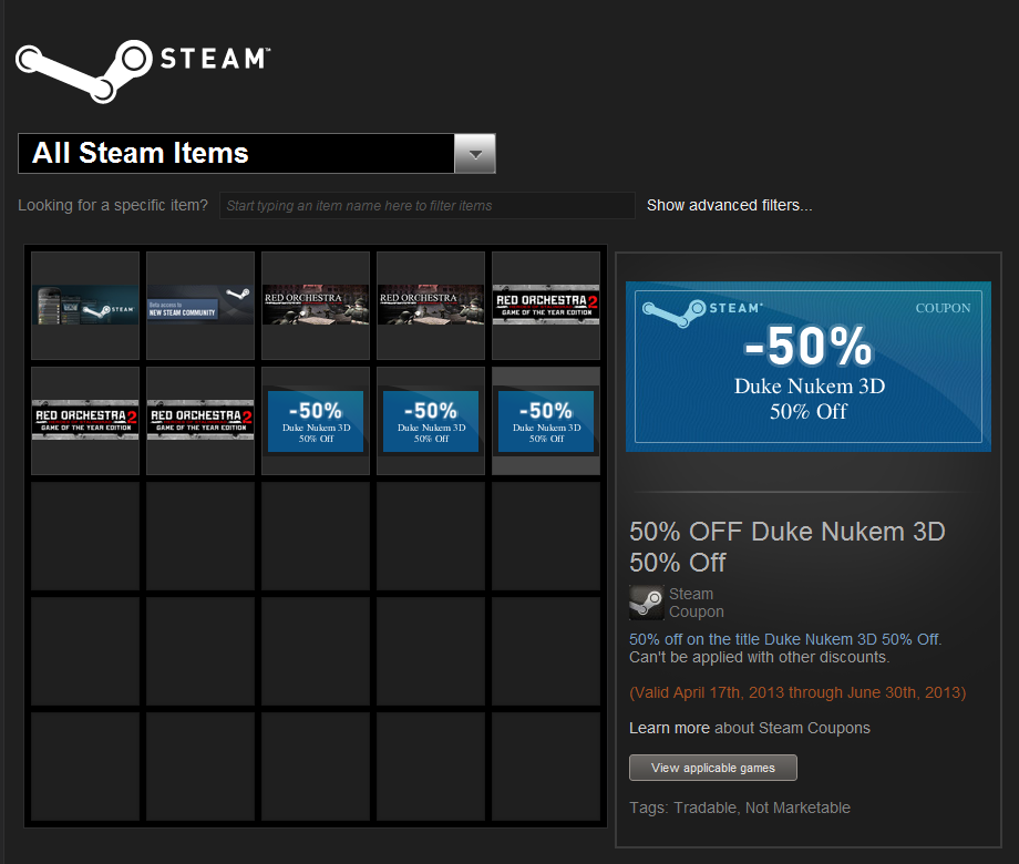 rabatt links auswählen, dann rechts auf den button "view applicable games"