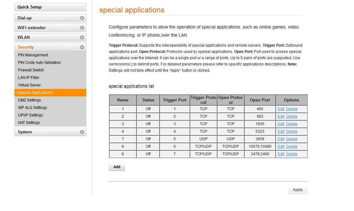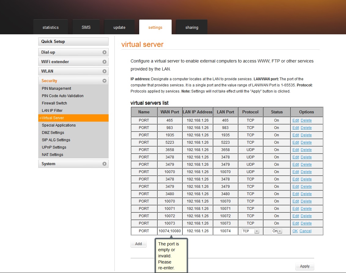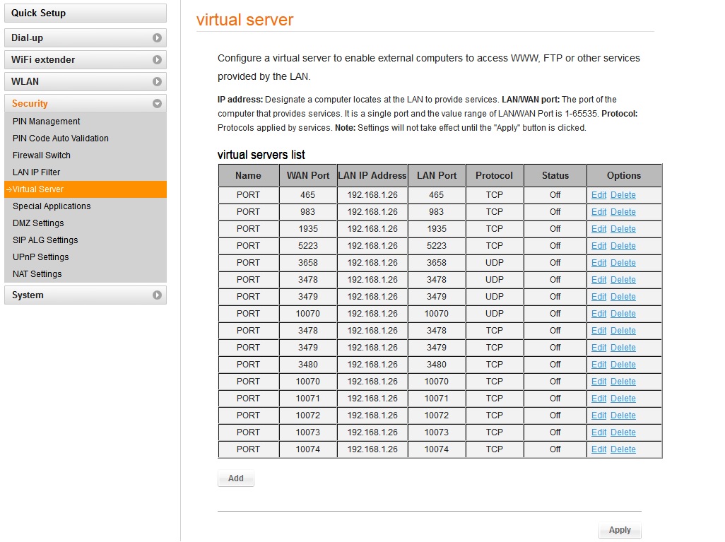 Kann mir da wer weiterhelfen? Zumal wie man mehrere Ports einträgt z.B. von 10070-10080, kann die irgendwie nur einzeln eintragen und gibt "Virtual Server" und "Special Application" wo man Ports eintragen kann...