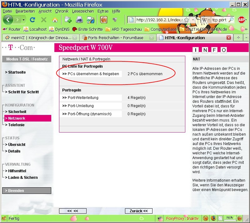 Ich möchte ein paar Ports auf meinem Speedport W701V freischalten nur weiß nicht wie das geht und hoffe ihr könnt mir weiterhelfen^^.