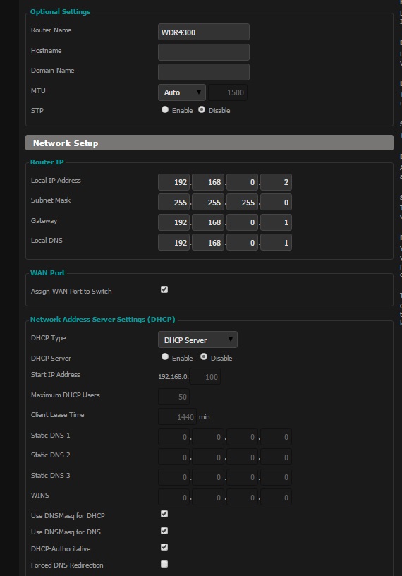 So ich bin mittlerweile beim TP-Link auf die DD-WRT Firmware umgestiegen und da sehen die Einstellungen etwas anders aus.