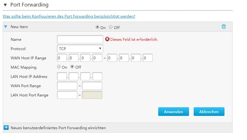 Name und Protokol ist klar, aber die WAN Host IP Range, woher soll ich diese wissen? Die Externe IP ist ja auch nicht immer gleich (dachte ich zumindest)
