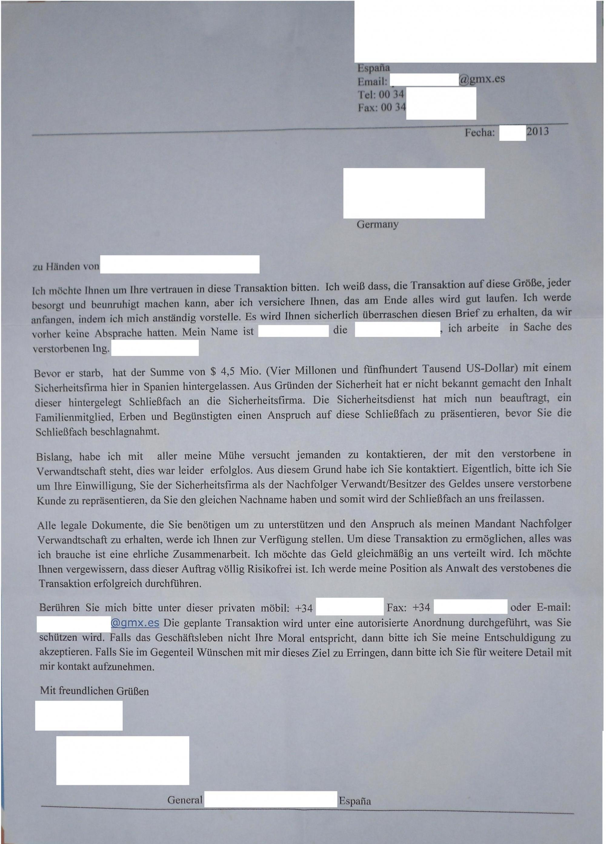 Der Brief kam per Post aus Spanien. Das ist kein Witz. Ich finde das echt lustig. Es scheinen darauf ja einige herein zu fallen, ansonsten würden die es nicht machen.