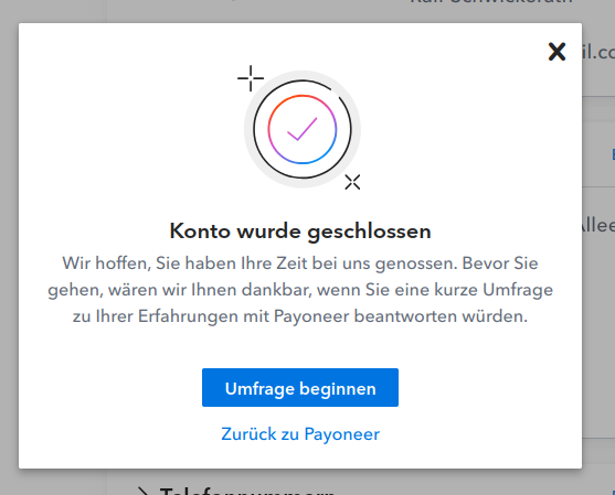 Darauf bin ich auch Mal gespannt, ob das reibungslos abläuft.0815burner schrieb:Löschung bei Payoneer anstossen. Mal sehen.
