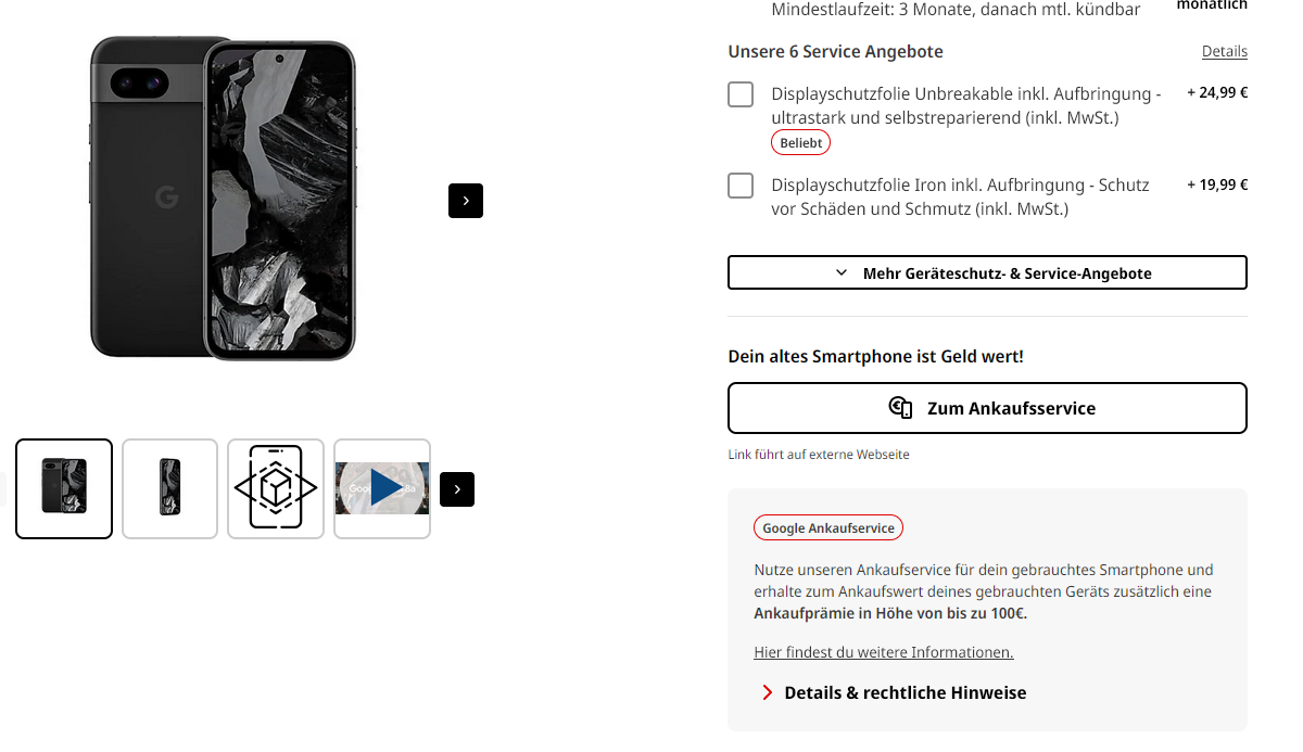 Ein Schmankerl ist noch, das ich, nach dem ganzen netten Gespräch, auf der Rechnung jetzt einen Pixel 8a Preis von 356€ habe (Rabatt ist Extra ausgewiesen), von Altgeräterückgabe steht da nix ;-). Könnte also das 4 a wahrscheinlich noch behalten. Bin aber froh wenn es weg ist. Muss beruflich ab und an Fliegen und da gehe ich für 200€ kein Risiko mit einem dubiosen Akku ein.