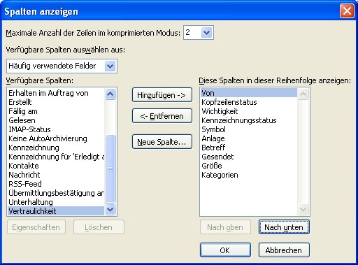 Wie stelle ich das wieder um, sodass der Name des Absenders dort steht?
