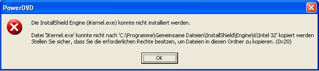 Hi, ich habe mir grad die Demo von Power DVD6 gezogen, aber nun lässt sie sich net Installieren! Es kommt Immer folgender Fehler. (siehe unten) Ich bin aber Computer Admin!