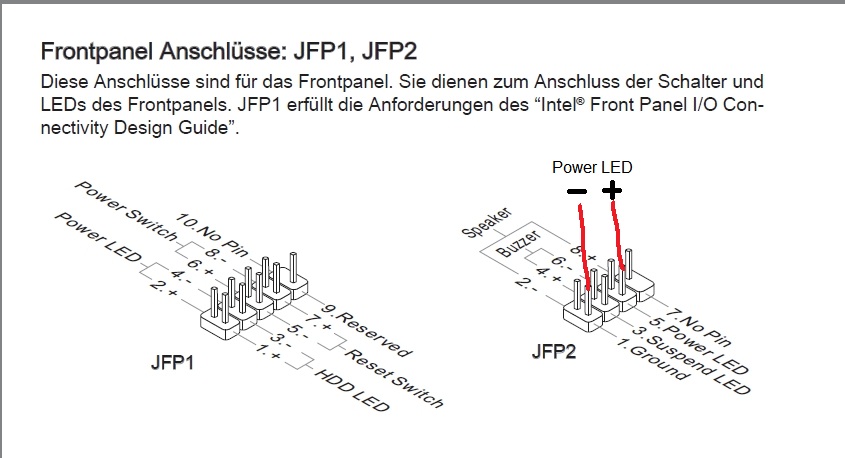 Meine Gehäuse hatten bisher immer den 2poligen LED Anschluss den man an JFP1 anschließen muss