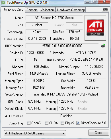 ich habe mir eine Powercolor HD5770 PCS+ gegönnt, jedoch leider die alte BIOS-Version erwischt, weshalb ich das GPU-BIOS von techPowerUp! installiert habe.