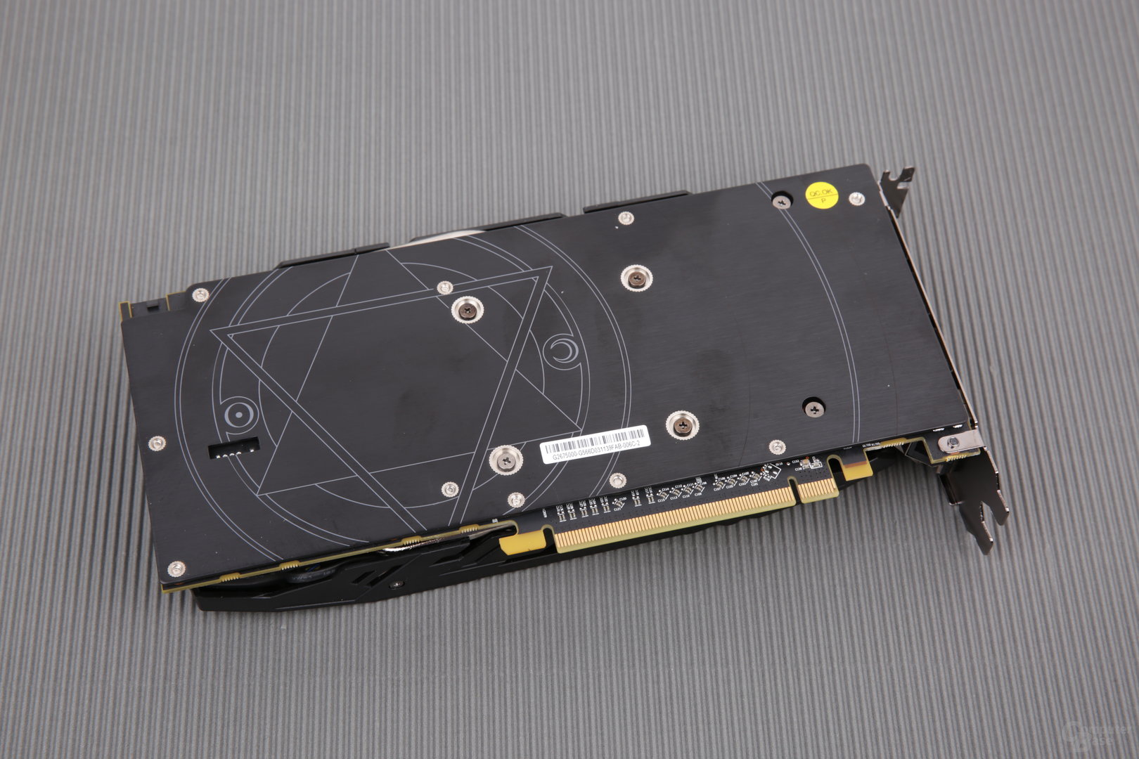 Bei meiner Rx 470 ist die Backplate jedoch komplett schwarz, nur die Aufkleber mit irgendwelchen Seriennummern sind drauf.