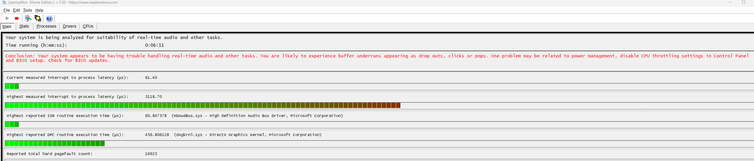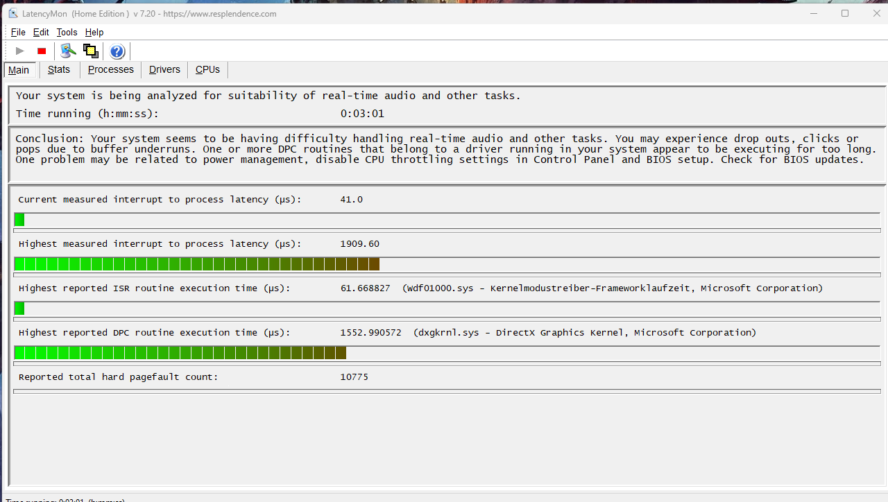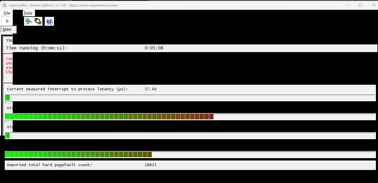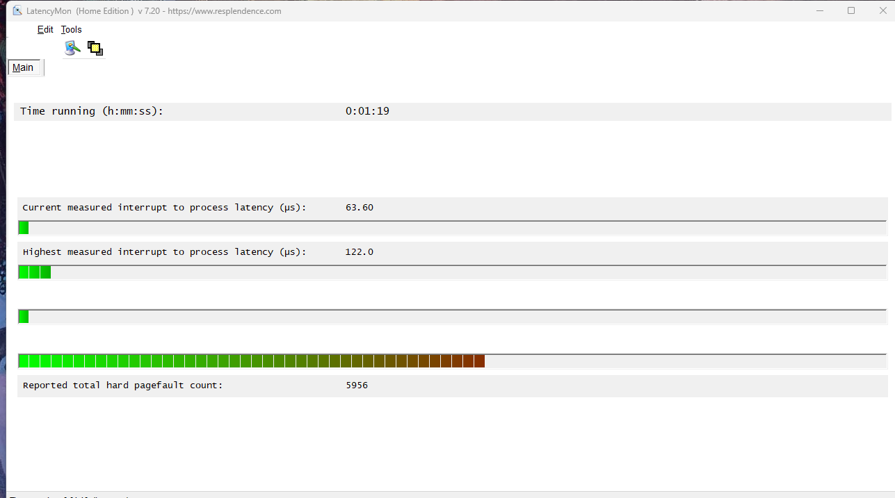 Also Runde 1 XMP brachte insgesamt 6 Fehler. Weiter habe ich noch ein paar Screenshots vom LatencyMon angehängt. Wie ihr sehen könnt, gibt es auch Grafikfehler. Zum Beispiel verschob sich die Taskleiste von der Mitte auf die linke Seite.