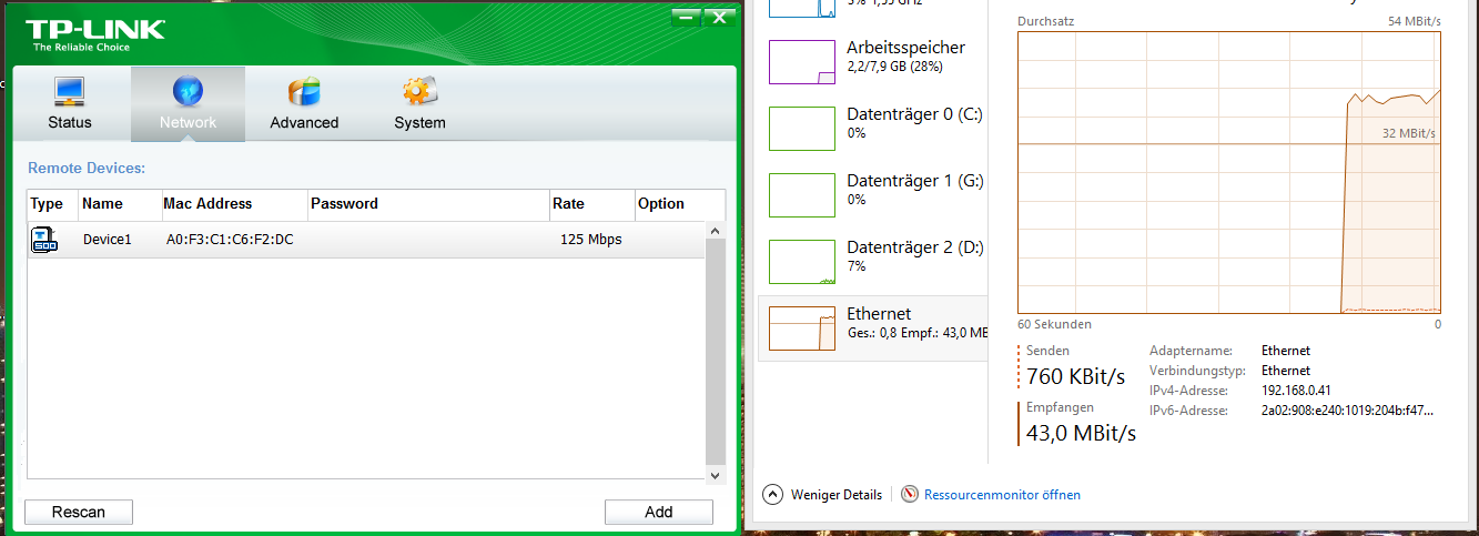 Schließe ich den gleichen PC direkt an den Router an bekomme ich volle 100 Mbit/s --> Unitymedia scheidet aus. Damit kann es auch nicht an der Testdownloadquelle liegen!
