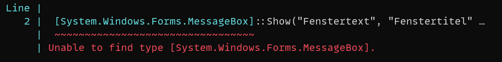 [System.Reflection.Assembly]::LoadWithPartialName("System.Windows.Forms") hat bei mir in der .ps1-Datei nicht funktioniert irgendwie.Drexel schrieb:Das entsprechende Assembly laden hilft evtl?