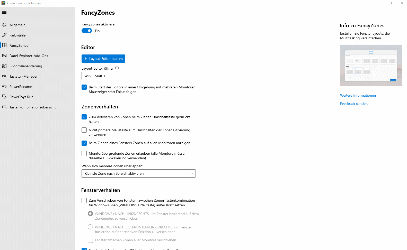 Zur Fensteranordnung nutze ich FancyZones.
