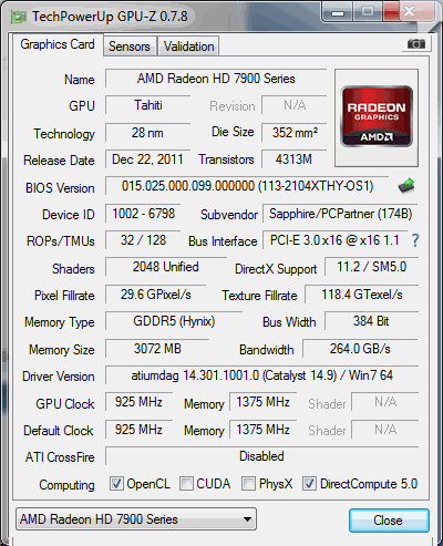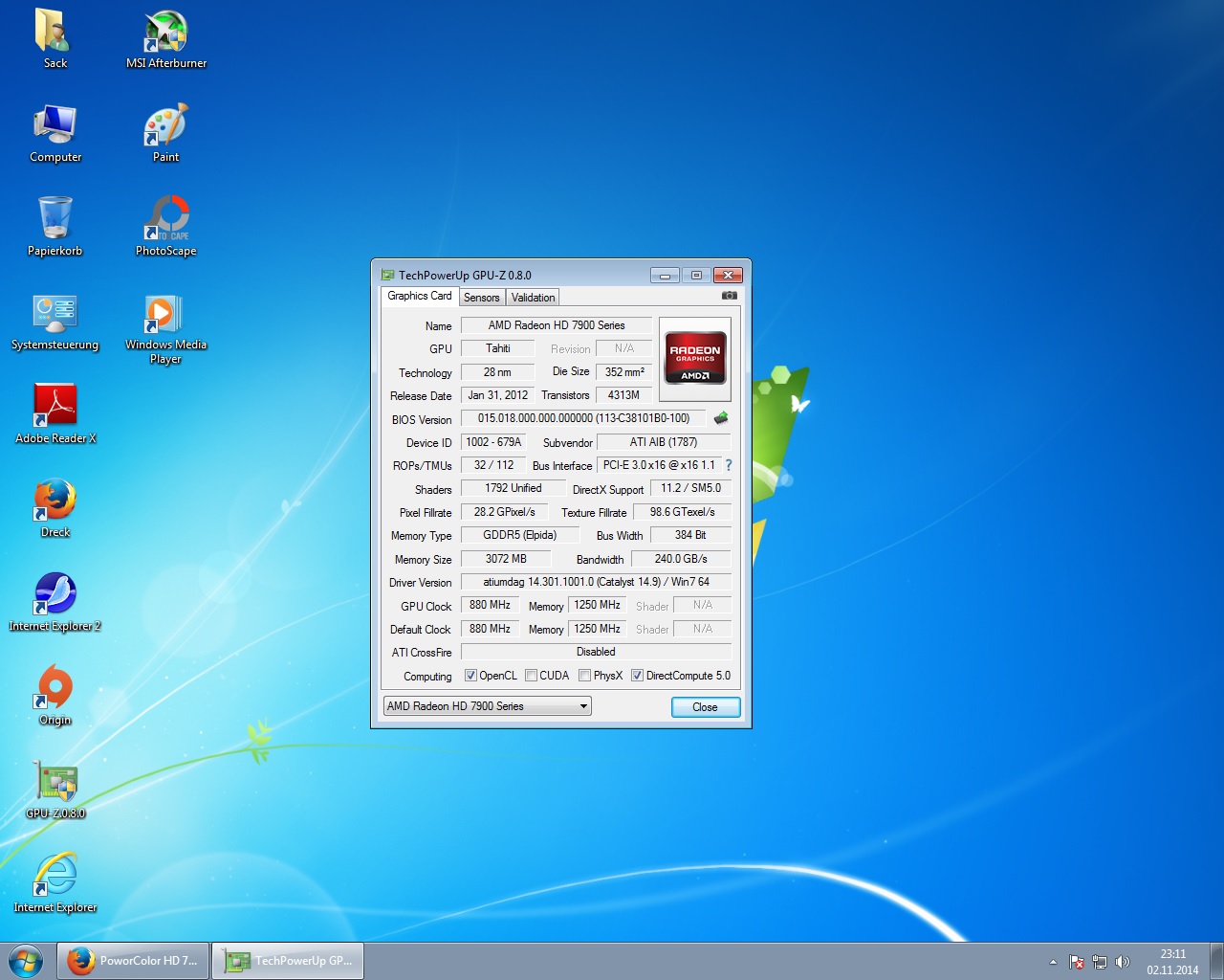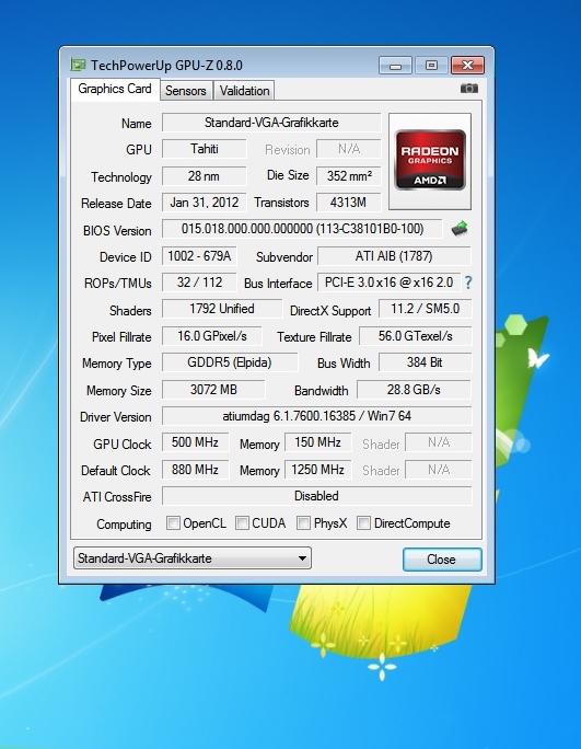 Habe eine HD 7950 PCS+ von PoworColor...Ist die Karte defekt oder was ist da los??Weil habe die AMD Treiber 14,9. Also habe WIndows 7 Pro Version 64Bit..Und bei GPU-Z zeigt die auf den beiden Bildern das Wort Standart VGA Karte an,obwohl die Treiber installiert worden sind,,,.Und man kann auch erkennen,das auch OpenCL aus ist...Also hatte auch schon den Treiber 14,4,,, und auch Festplatte neu formatiert....
