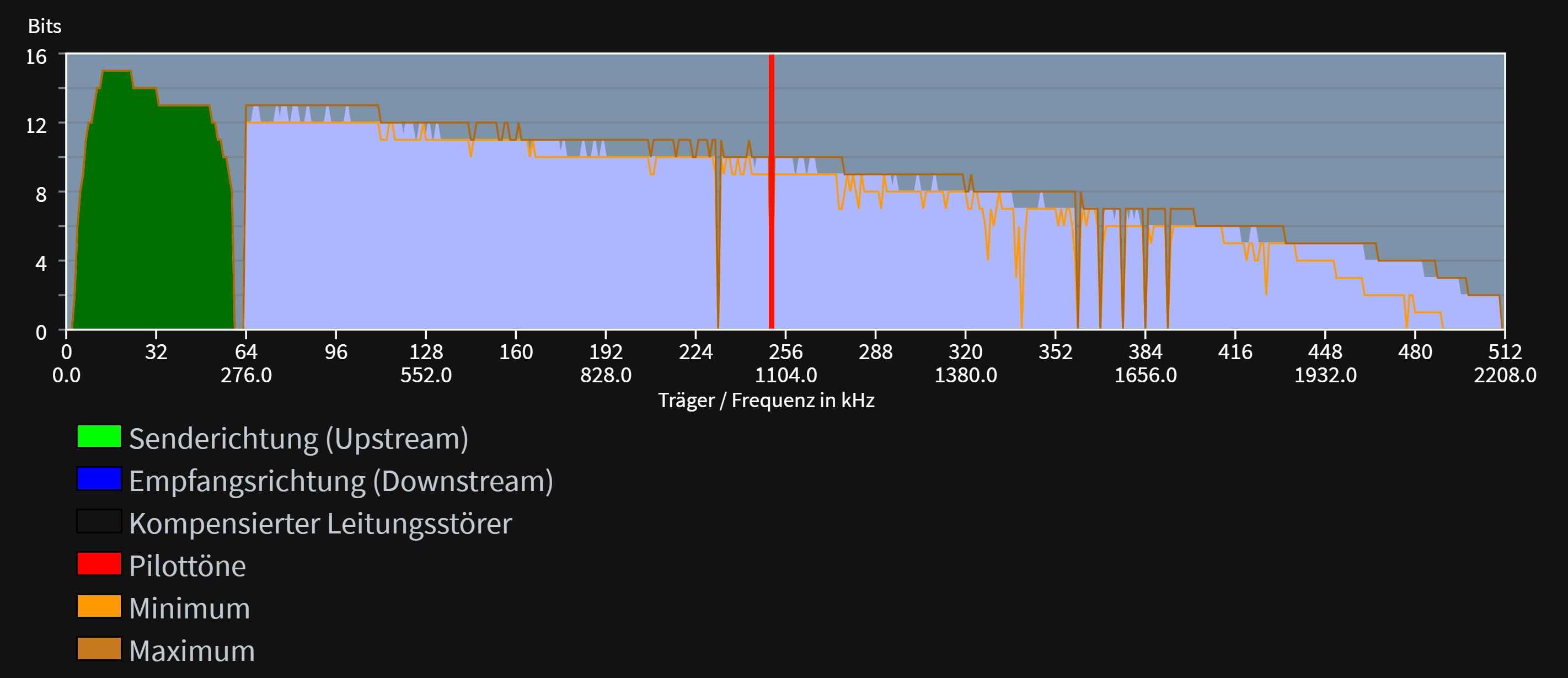Daraufhin habe ich mich an die Telekom gewandt, die aufgrund des genannten Fehlers eine „Bereinigung“ auf der Leitung laufen ließen, was aber nichts gebracht hat. Was die Internetleitung angeht, habe ich übrigens eine DSL16k, wo ca. 13k stabil ankommen. Mehr geht leider nicht.