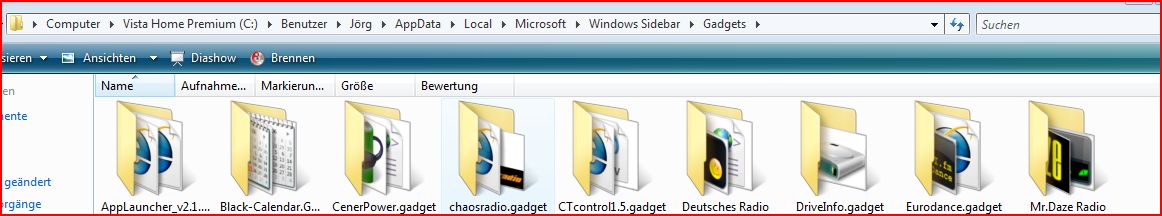 Wenn ich "In Sidebar installieren" anklicke, speichert er mir das Teil auf den Desktop.