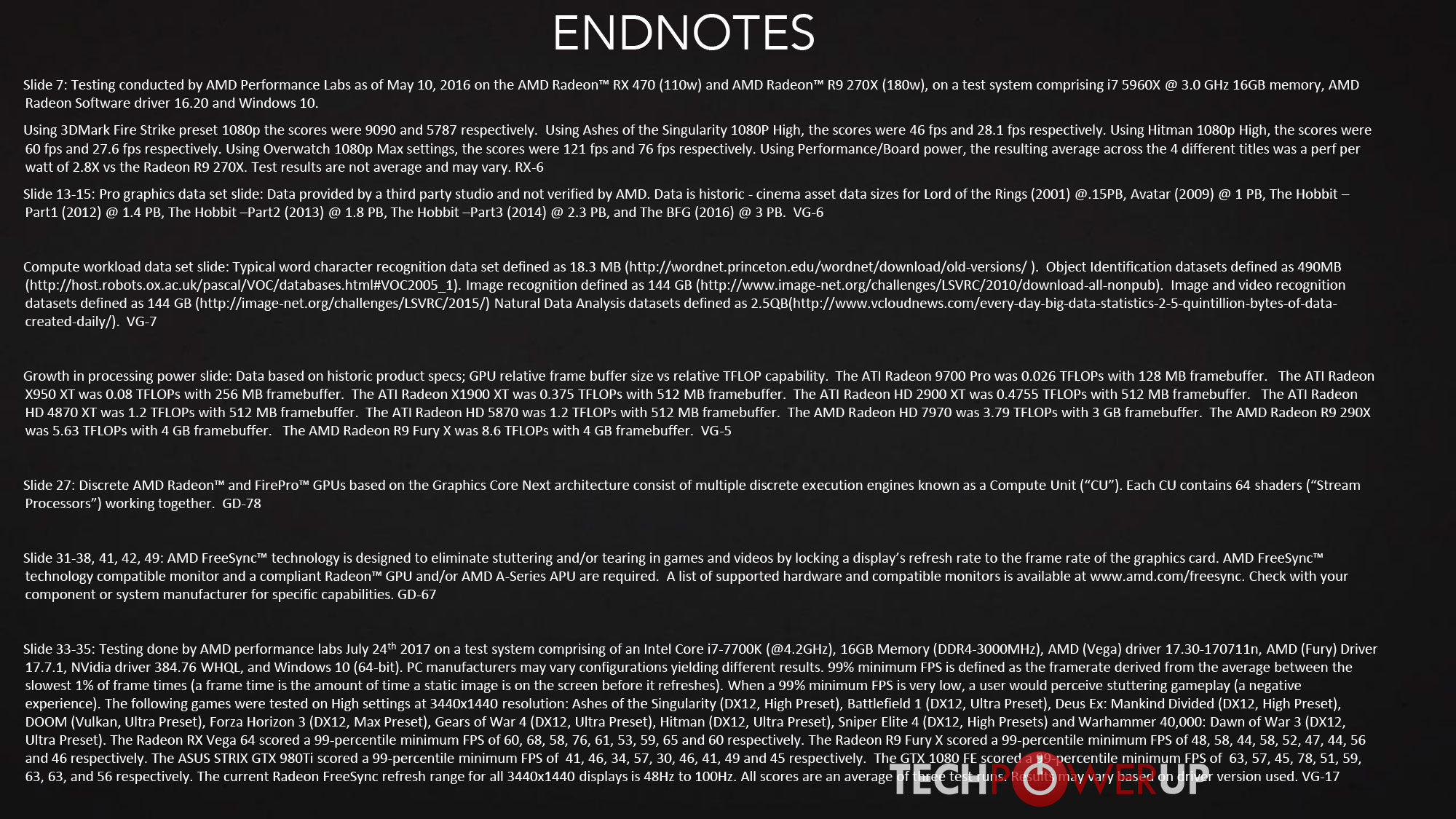 auch die anderen folien bieten keine "detaillierten" messwerte, es handelt sich nach wie vor nur um herausgepickte min-werte der karten. das hat nichts mit dem zu tun, was bspw. tomshardware hinterher in "detaillierter" form veröffentlich. zudem war test-cpu ein 7700k@ 4,2 ghz. ein garant für maximale gpu performance