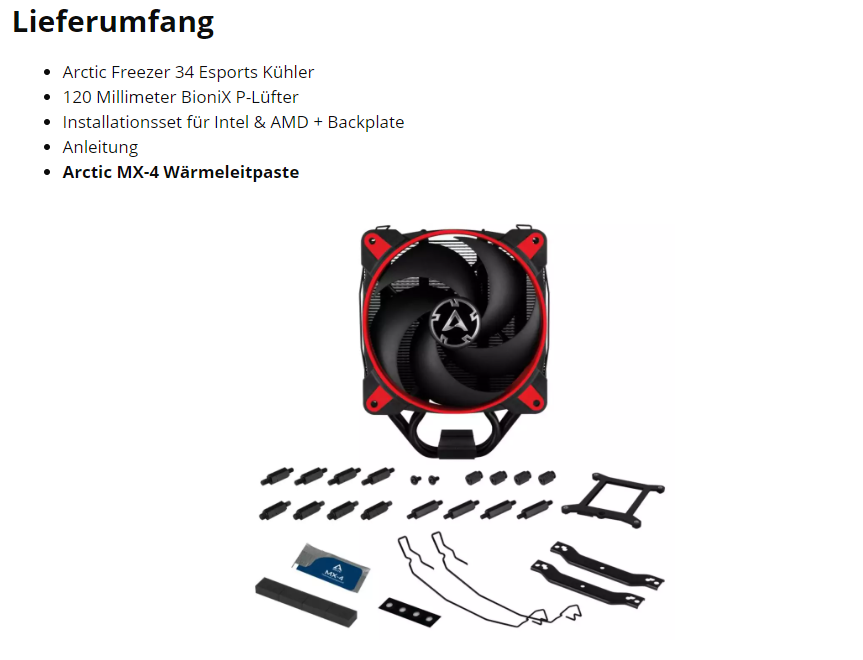 Ich habe gerade im Internet gesehen, dass der Arctic eSports Kühler nur für einmalig eine Wärmeleitpaste dabei hatte.. Wo kann ich mir eine neue kaufen? Und was muss ich dabei beachten?Mork-von-Ork schrieb:Bitte zukünftig beachten: So zitiert man Teile eines Beitrags und vermeidet Fullquotes