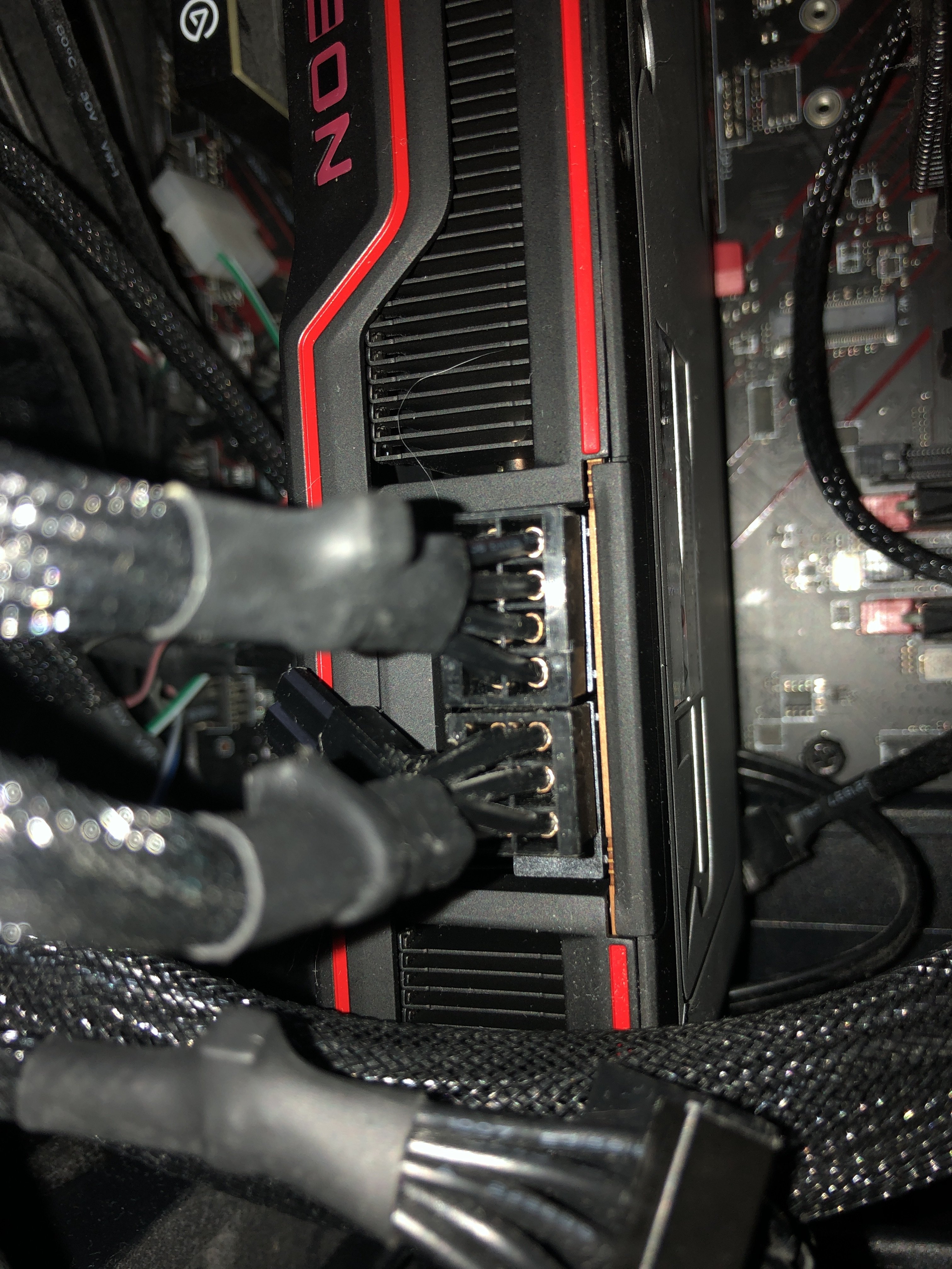 Die Grafikkarte braucht einen 8 Pin und einen 6 Pin.