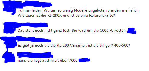 Wenn man sich den Preis des Komplettsystems anguckt was MF da anbietet kann man ja ungefähr auf den Preis schließen. Find sowieso die 290 ohne x interessanter, falls es sich zwischen den beiden wie zwischen 780 und Titan verhält.