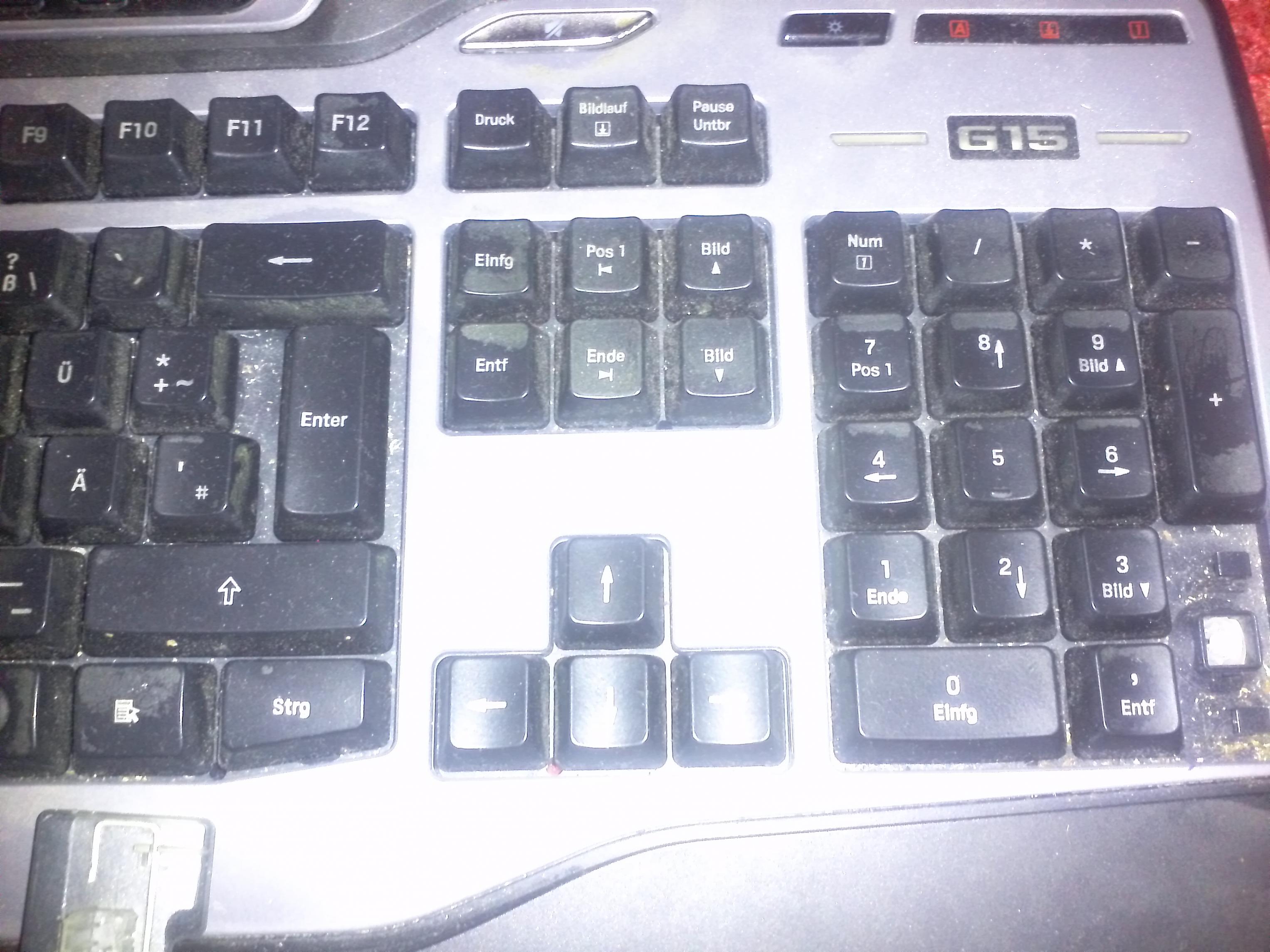 7. Logitech G15 Refresh - Wurde ca. zwei Jahre intensiv gebraucht - Funktioniert einwandfrei - Entertaste sprang eines Tages raus und eine Klemme, damit die Taste hält, ist abgebrochen. Dadurch habe ich die lange Entertaste des Numblocks dafür eingesetzt - OVP - 30€