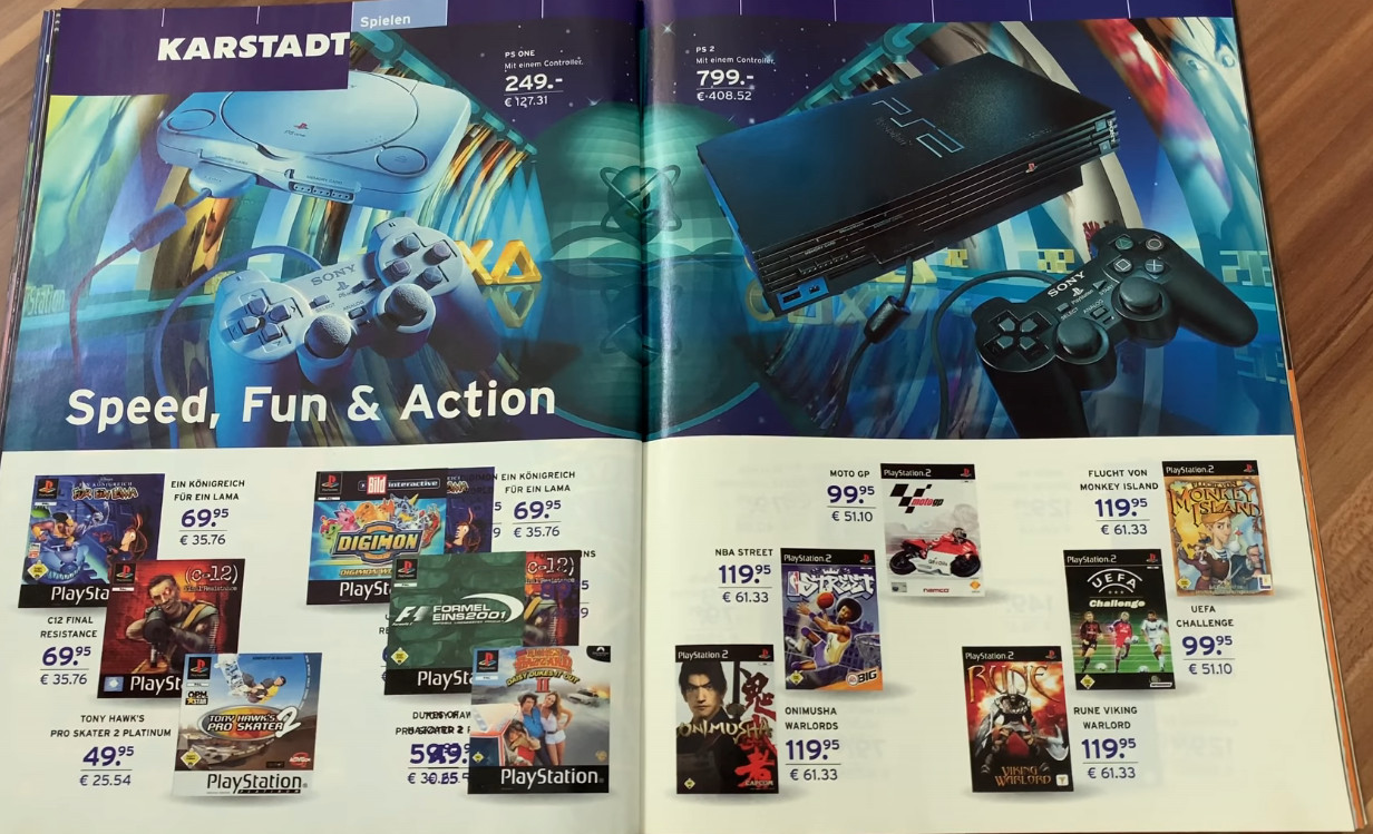Wir können auch per Wayback Machine mal in die Vergangenheit auf die Okaysoft.de Seite reisen. Okaysoft waren in der Prä-Amazon Ära ja höchst beliebt, denn dort waren Spiele meist deutlich unter UVP zu bekommen und trotzdem sehen wir hier für die neueren Spiele "Standard"-Preise um/über DM 80.- bis DM 85.- (für deutsche Versionen).