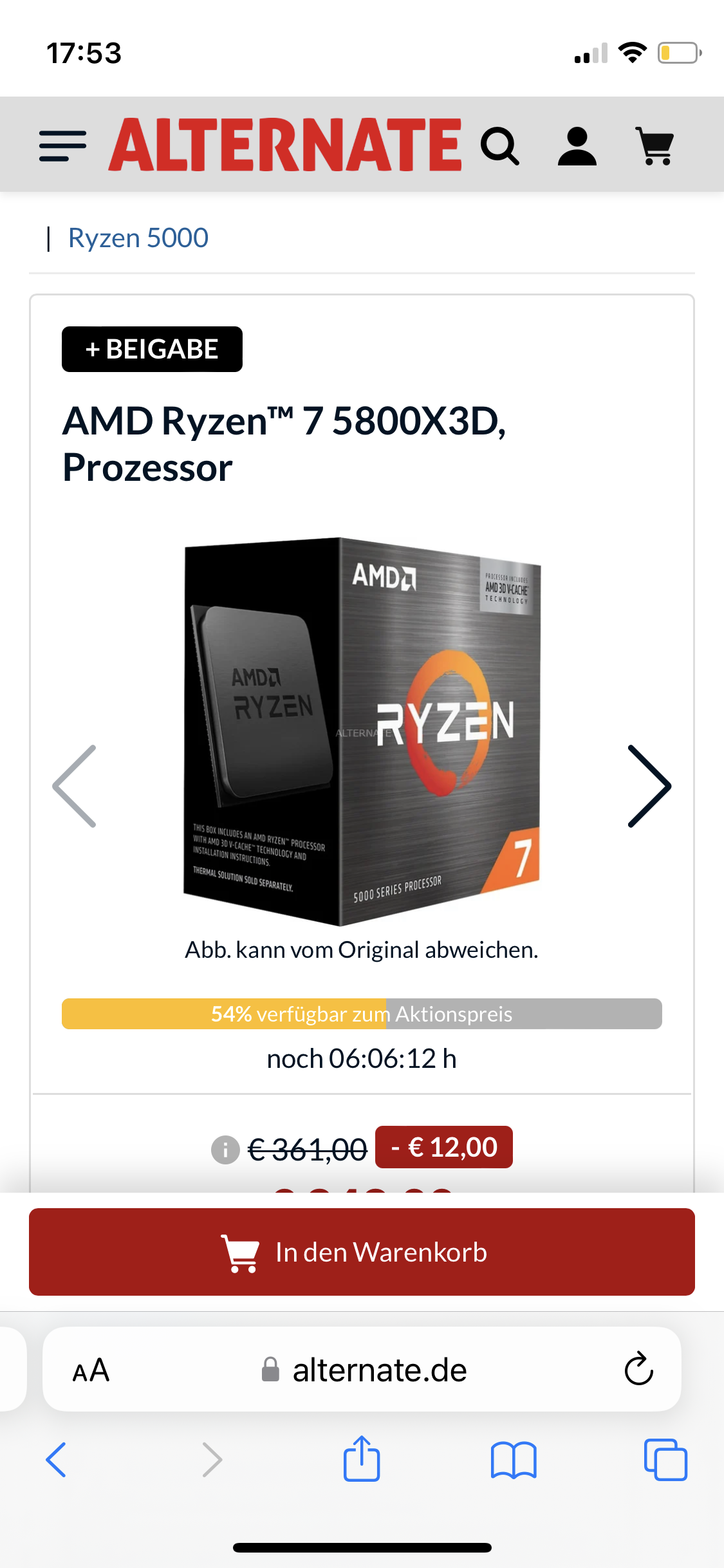 Habe gerade nochmal für einen ungeduldigen Kumpel nach dem Bestpreis für den 5800X3D gesucht. 349€ versandkostenfrei statt wie von Idealo angezeigt 369€ inklusive Versand.
