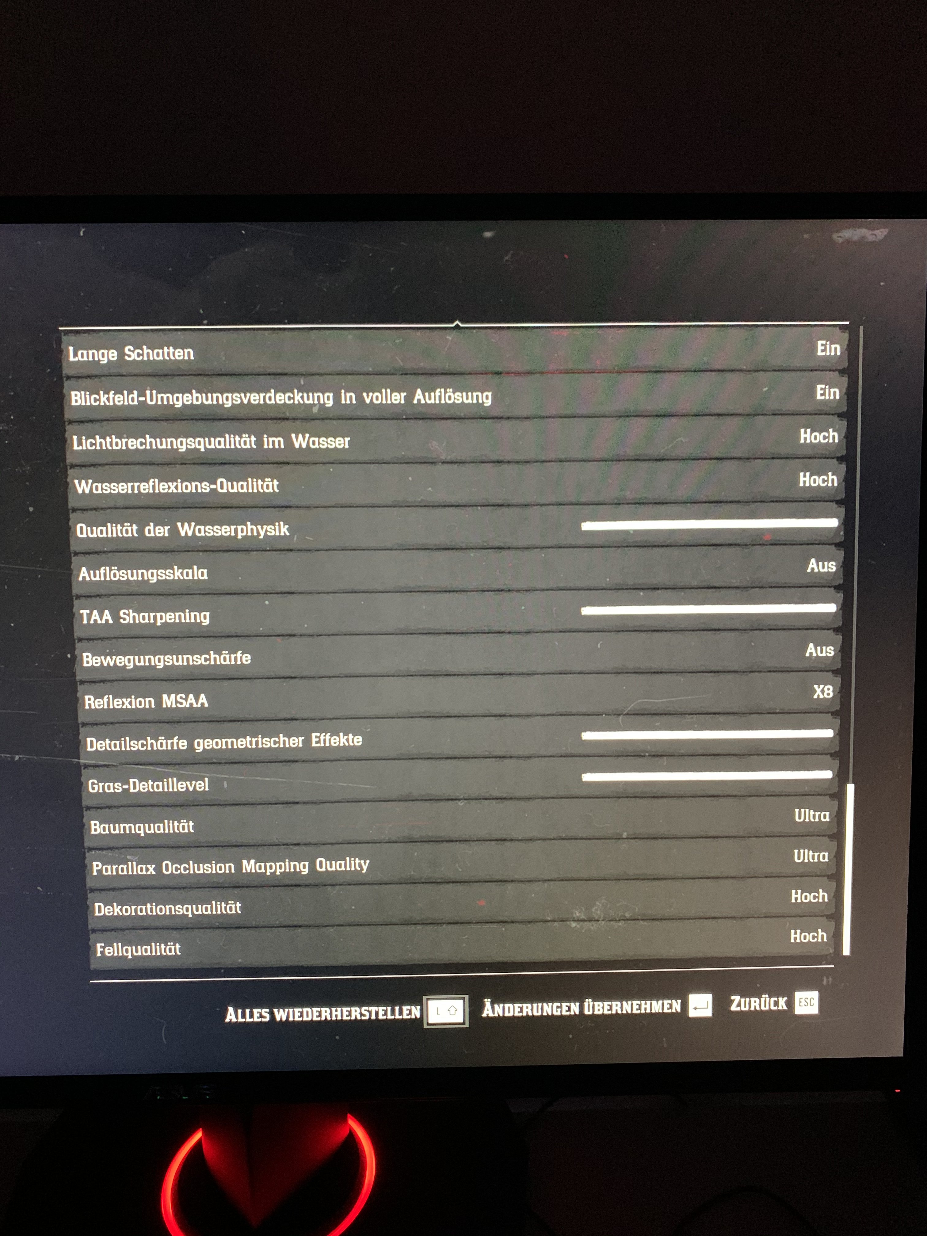 Ich zocke auf einem Mix aus Ultra und High, und gebe dafür nur etwas Auflösung auf (3840x1648 ohne Skalierung/Interpolation, das bekomme ich nämlich gar nicht auf die Kette, nen UHD-Monitor um sich dann 2560er-Interpolations-Matsch ansehen zu müssen^^).