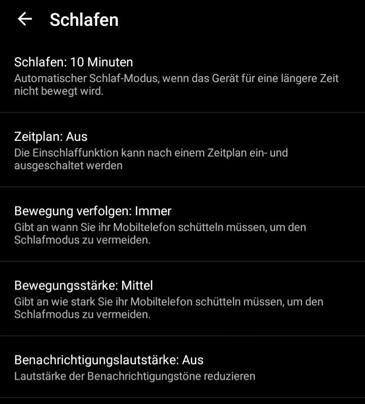 Der sleeptimer nutzt den g sensor um sich zu reseten. Die Intensität kann man einstellen.