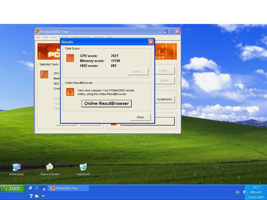 und ganz anders als der northwood braucht der prescott die vcore-erhöhung auch: ohne läuft nix, mit sofort. richtig dankbar die cpu für mehr volts, gerade so wie ein barton