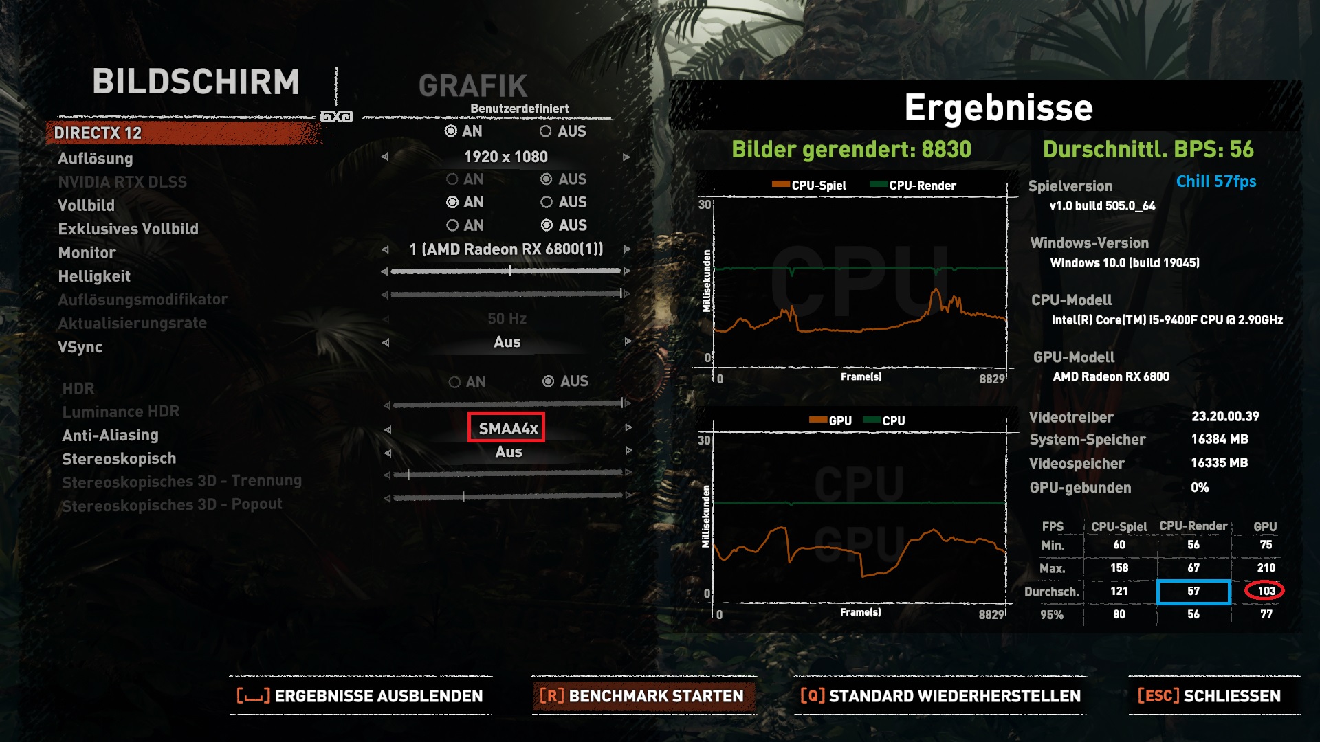 Und tatsächlich gibts ein anderes Ergebnis. GPU-Schätzung steigt von 95fps auf 103fps.