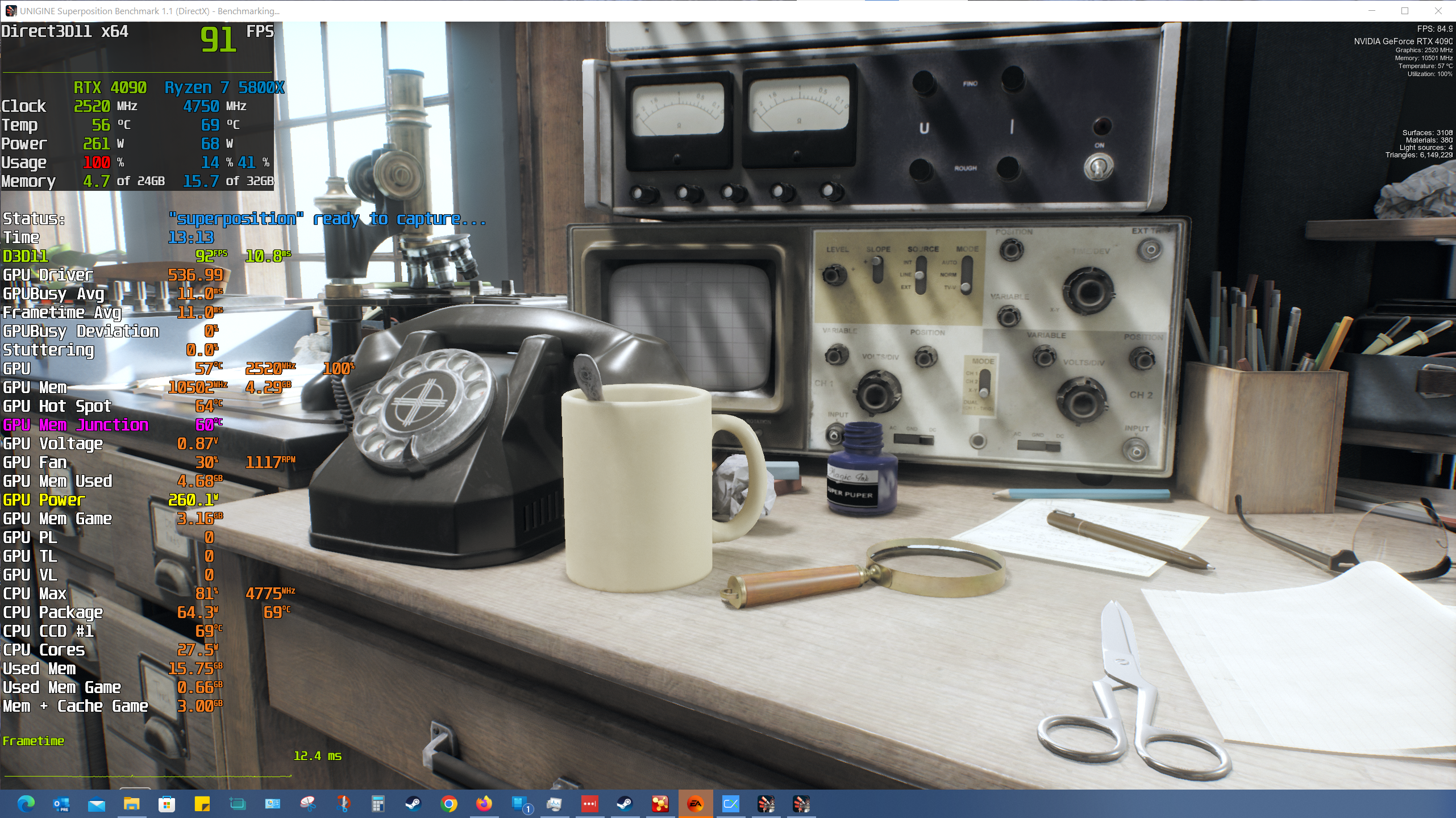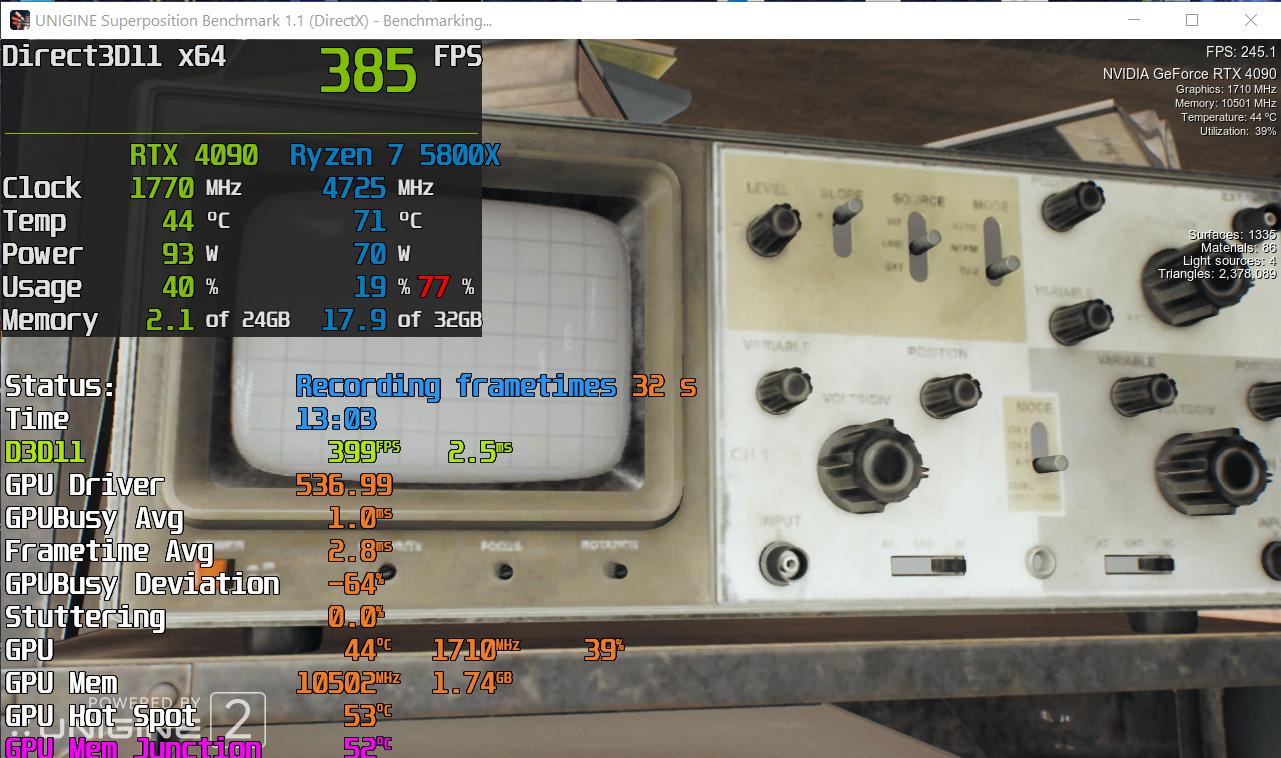 Beim ersten Run hatte ich das Glück,. dass die Sensor Abfrage genau dann stattgefunden hat und ich so sehen konnte, dass die GPU auslastung eingebrochen ist, der Spike also nicht von der GPU kommt.