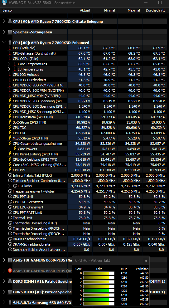 Ich kann ganz normal weiter arbeiten und auch diesen Thread hier verfassen während die CPU auf 4,25GHz taktet und der CPU Lüfter knapp über der Idle Drehzahl läuft.