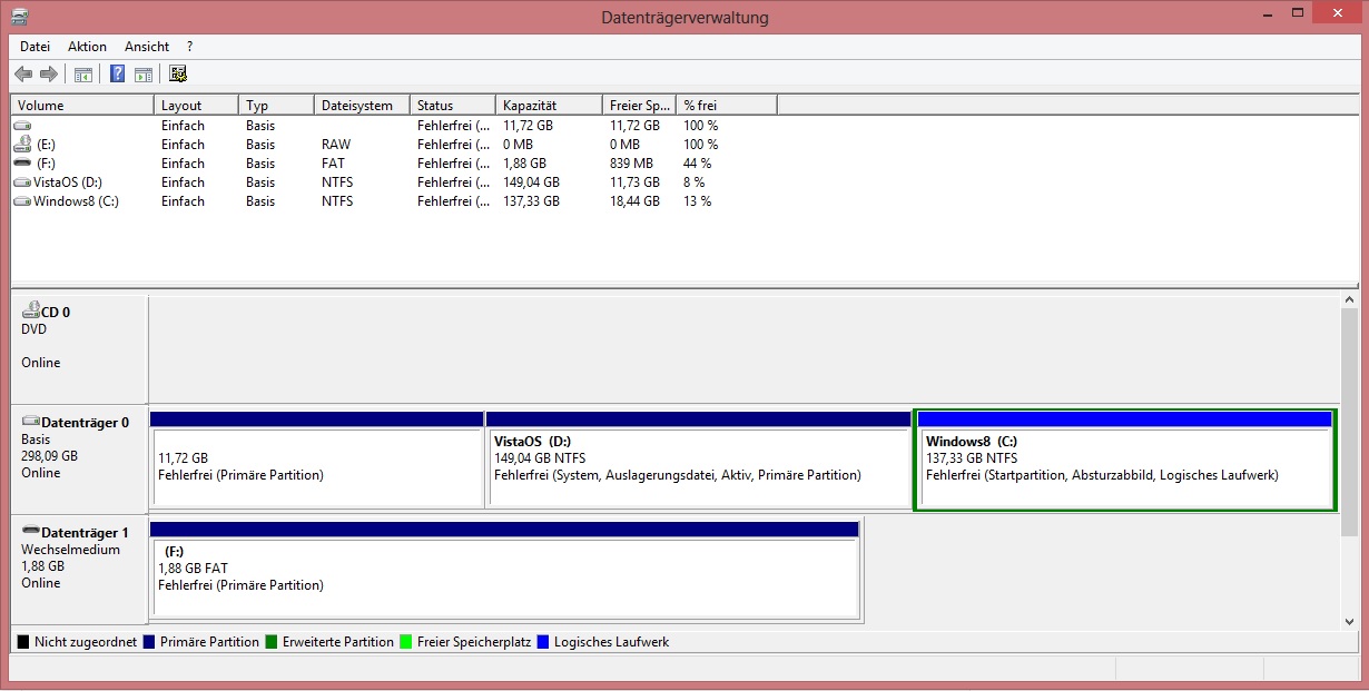 so siehts in der Datenträgerverwaltung meiner Frau aus: