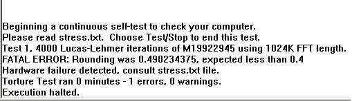 Prime95 Fehlermeldung