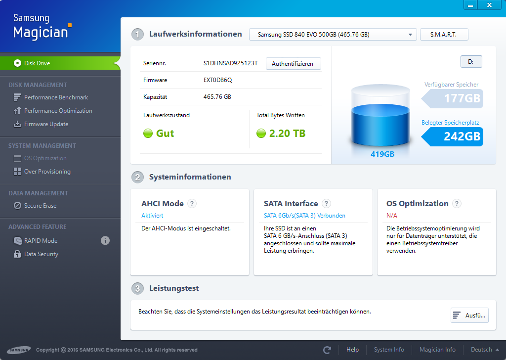 Meine Frage ist, in wie fern das Samsung Magician Software Tool was taugt, insbesondere ob die Einstellung "maximale Leistung" was bringt, und ob man sich das manuelle Eintragen sparen kann?
