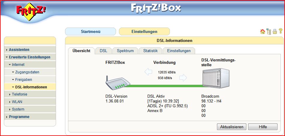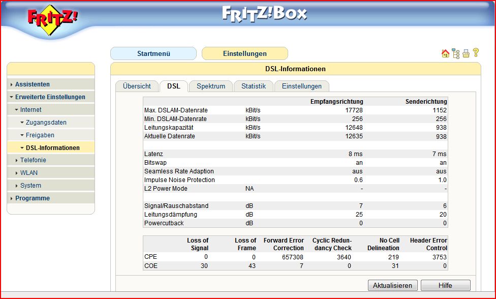 Wie gesagt, sind die Schwankungen zwischen ADSL und ADSL2, tagesbedingt. Einen Tag läufts wunderbar, an einem anderen jedoch, nur über ADSL (~ 6300er)
