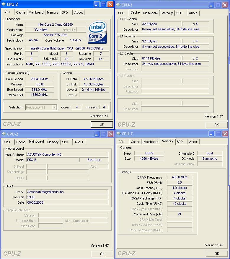 Die CPU ist noch nicht Übertaktet also noch bei ihrem Standard von 2,83 GHZ.