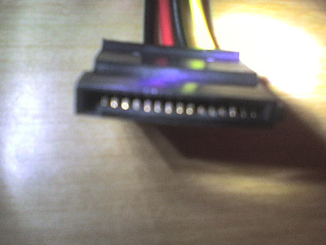 Hab mir heute eine neue wd20ears gekauft. Beim anschließen hat's einen (leisen) Knall gegeben: Ein Pin an der Platte ist leicht geschwärzt, das Kabel hat eine Beule - das Plastik ist an der Stelle des betreffenden Pins aufgeblasen. Die Platte selber funktioniert (soweit ich das sagen kann) noch gut: ...