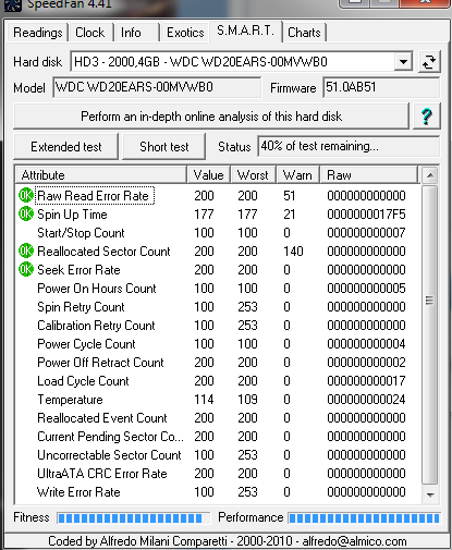 Nachtrag: HDTune kann keine Werte auslesen (das funktioniert bei der wd15eads und der wd10eacs). Was SpeedFan sagt, kann man im Anhang sehen (leider lässt sich das SpeedFan Fenster nicht in der Grüße anpassen, daher hab ich die letzten Zeilen mittels MSPaint dazugefügt).