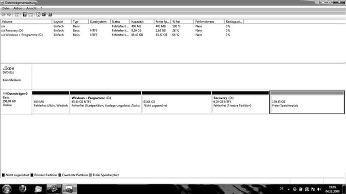 Str + sowohl im FF als auch im IE. Die Partition mit dem freien Speicher löschen, dann hast Du einen "Nichtzugeordneten Bereich", indem Du deine neue Partition erstellen kannst.