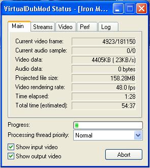 Ich versuche die ganz Zeit einen Film (2 Stunden Spielzeit) im Formt *.mkv nach *.avi zu codieren! Egal ob DivX oder XviD ...