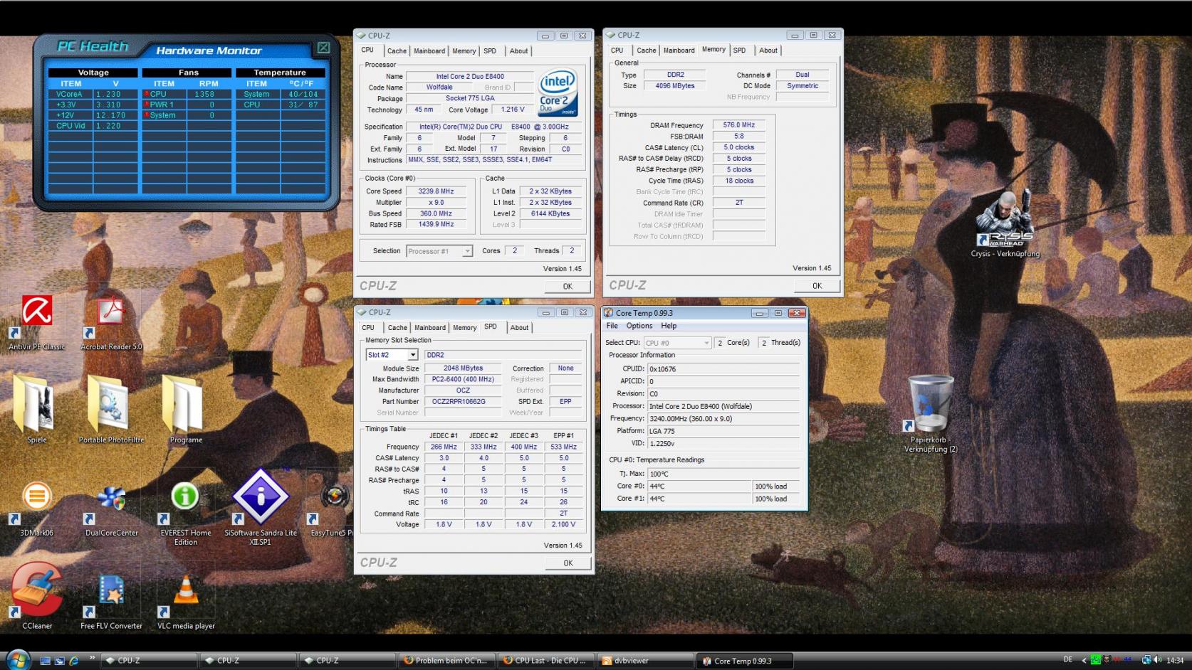 Ich wollte eigentlich bis zu 1,45V durchjagen und sehen wo das Ende der Fahnenstange ist, aber dass ich nicht über einen FSB von 360 komme