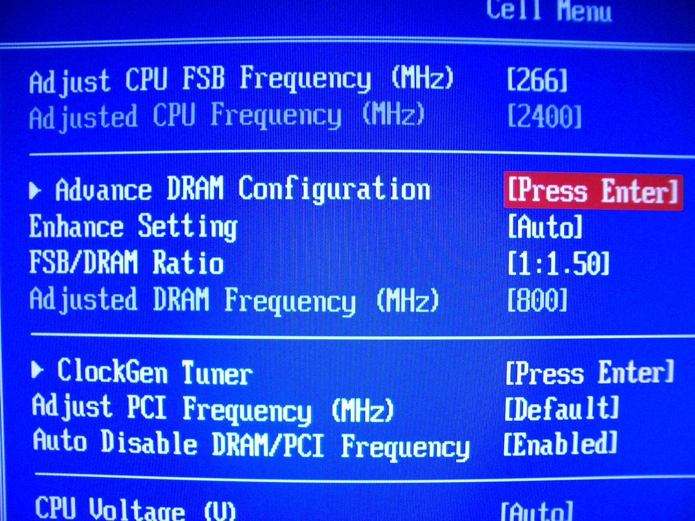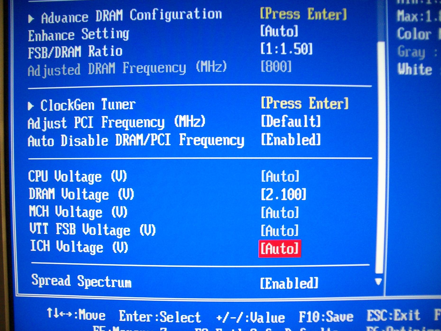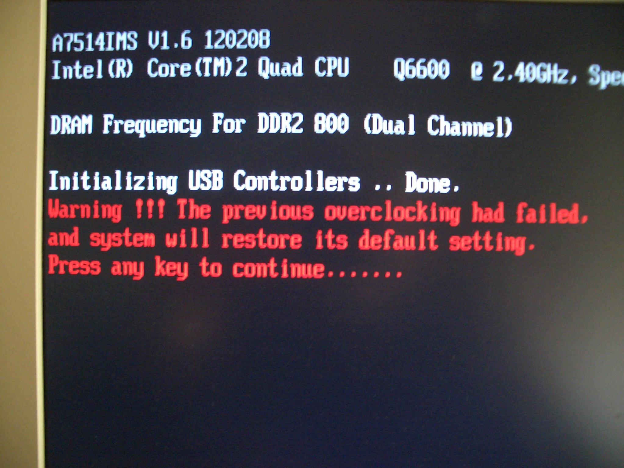 Du hast nur den RAM auf 1066 MHz gestellt und die MCH Voltage um eine Stufe angehoben, und dann kam diese rote Meldung?