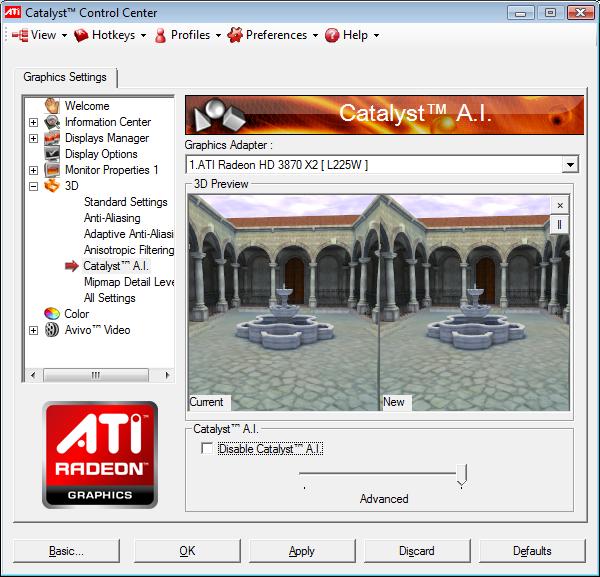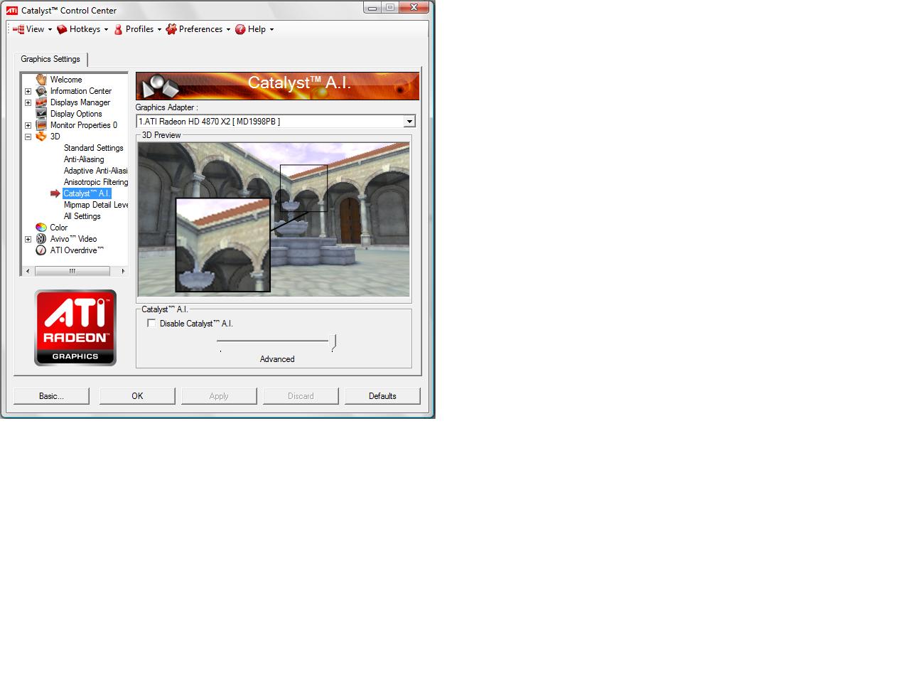 Also ich habe den Catalyst 9.2 im moment drauf. Da der Catalyst 9.2 in CF-Systemen Probleme mit dem PP hat und ich meine Karte im Idle runtergetaktet haben wollte habe ich in den "Profiles" alles folgendermaßen eingestellt: