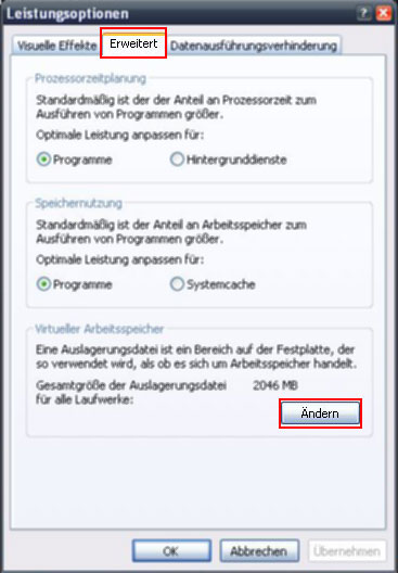 Erweitert | Virtueller Arbeitsspeicher: Ändern