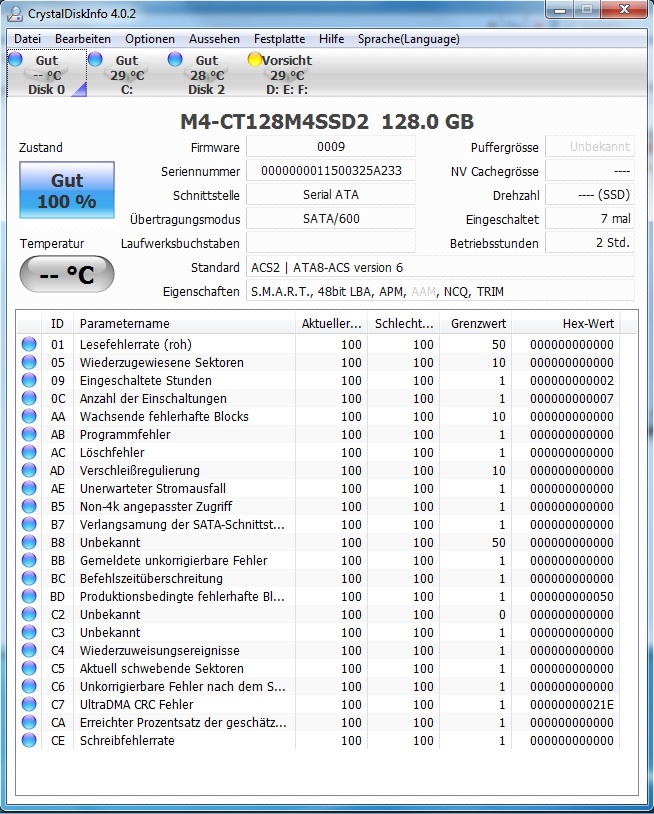 meckswell, zuletzt ging es um die andere Platte, für die CrystalDiskInfo schon Vorsicht anzeigt. Das aber ein fehlerhaftes SATA Kabel so eine Auswrikung haben kann, war auch mir neu.