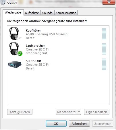 Ich bin Besitzer eines Astro Audio Systems A40. Ich bin damit eigentlich ganz zufrieden, habe aber ein Problem. Bei mir scheinen die Softwarelautstärkeeinstellungen von W7 und die Hardwarelautstärkeeinstellungen vom MixAmp, einem DolbyHeadphone-Wandler nicht wirklich zu stimmen.