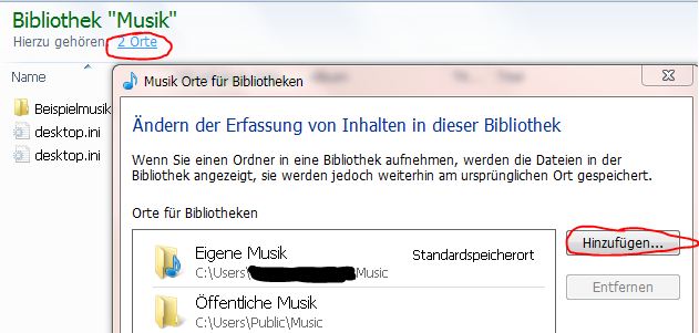 Bei mir werden dort nur die drei Beispiel.mp3 gefunden. Wurde über diese Suche denn schon mal mehr gefunden? Beim kurzen Umschauen würde ich raten, dass man die Musik erst zur Bibliothek von Windows 7 hinzufügen muss. Siehe Screenshot.