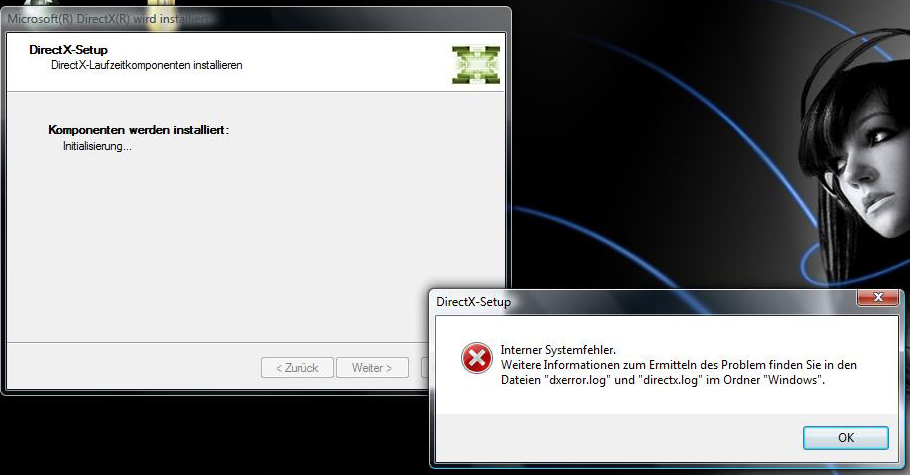 Wenn ich versuche den cod 6 Multiplayer zu starten wird mir von Steam angezeigt das ich zum Spielen das neuste DirectX benötige. Im dxdiag wird mir als version direct x 11 angezeigt. Wenn ich versuche Direct x neu zu installieren kommt eine Fehlermeldng mit interner Systemfehler (bild)